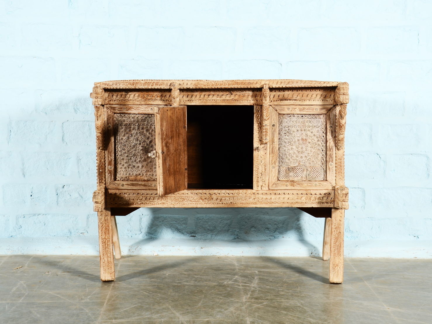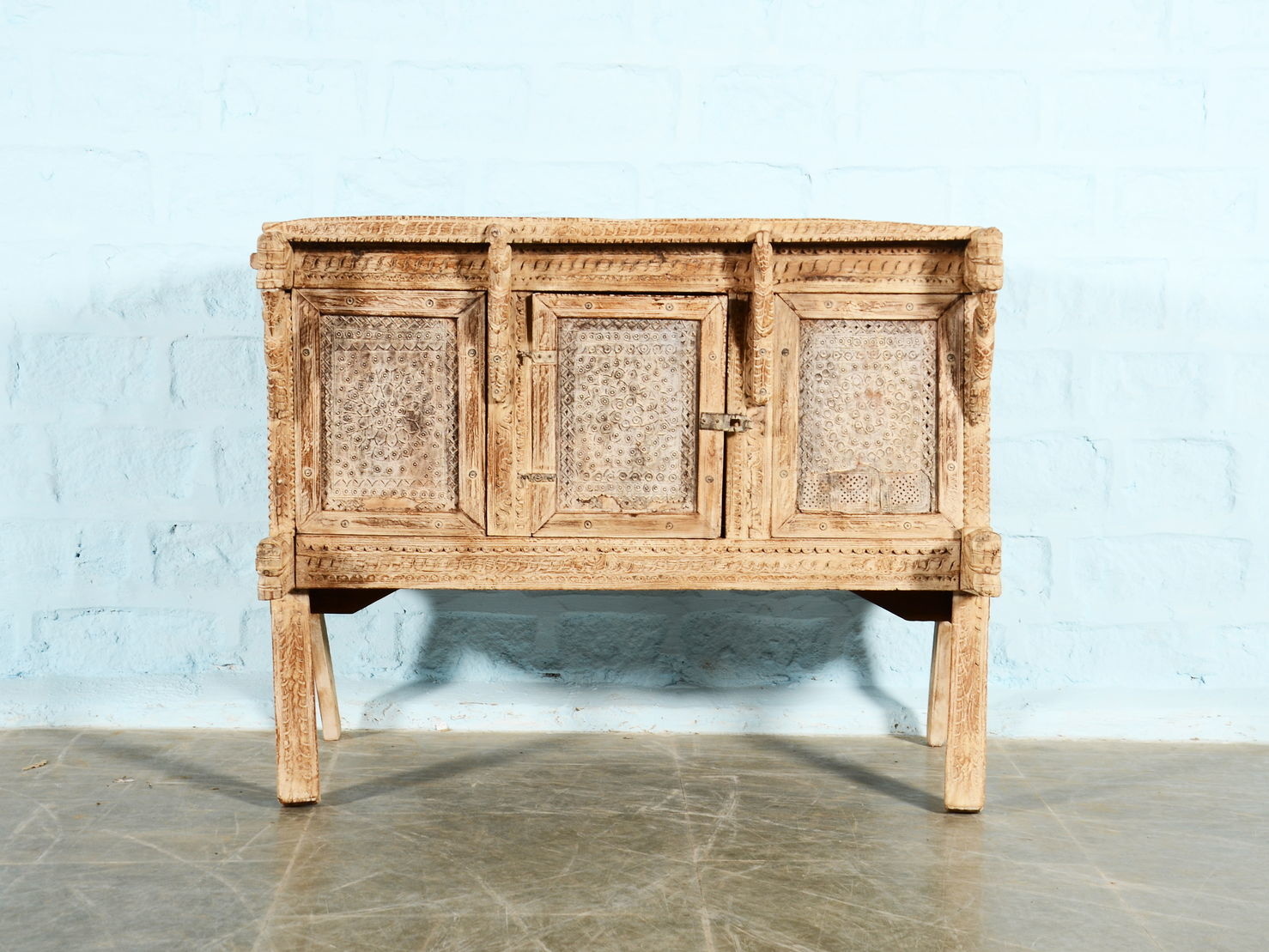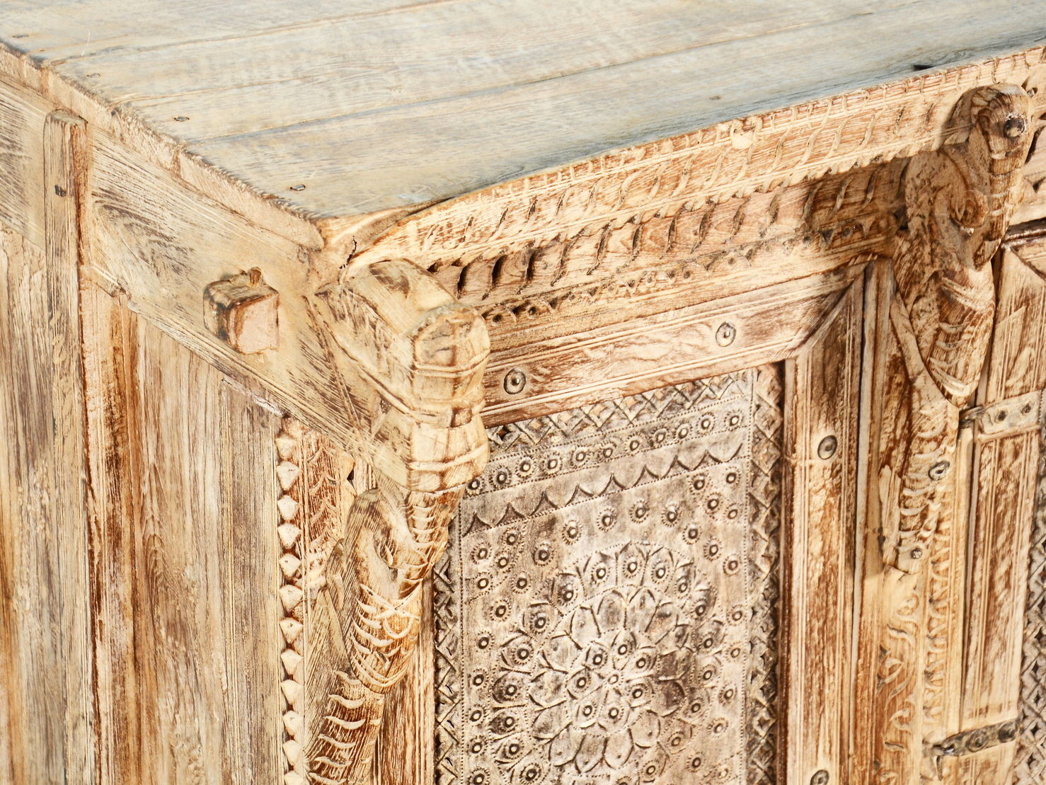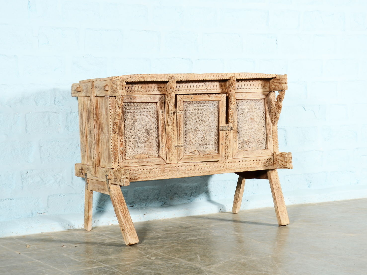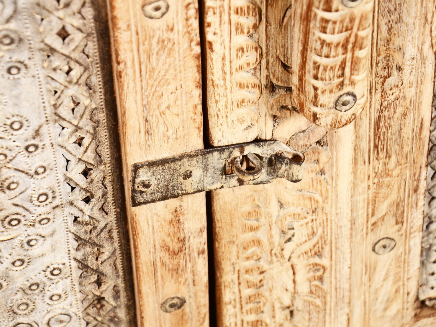 Autentieke Indiase Damchiya / bruidskist met een mooi doorleefde natuurlijke uitstraling. 117 x 55 x 92 cm