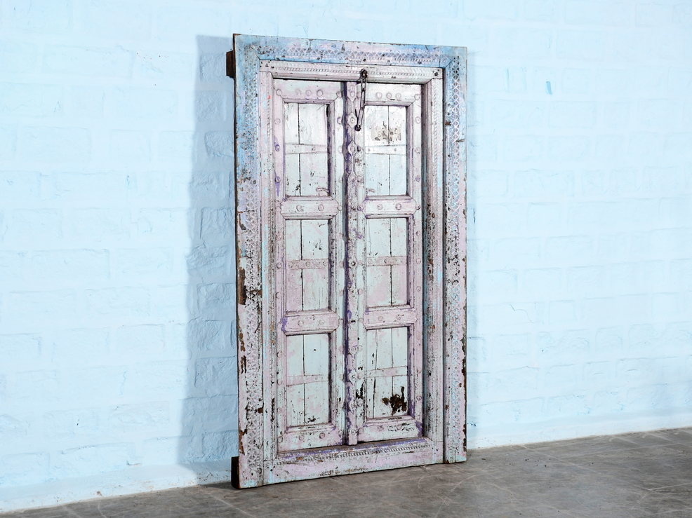 Antiek dubbele deuren in frame uit Jodhpur, India. 118 x 10 x 194 cm.