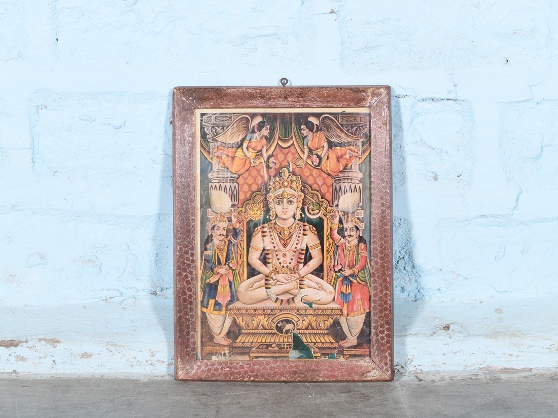 ± 25 x 35 cmÉcht orginele vintage Hindu poster uit India Achter glas in orginele lijst. Leverbaar vanaf begin mei.